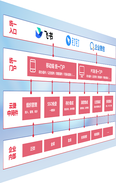 对协作平台提供支持服务,,,支持企业应用与协作平台对接,,包含组织同步、、、消息集成、、、、待办集成等。。。支持目前主流的协作平台:钉钉、、、、企微和飞书。。